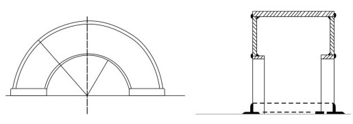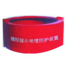 此地埋裝置為兩個半圓形中空組合而成,將橡膠接頭和管道平焊法蘭全部裝入體內(nèi),兩端安裝設(shè)有兩半圓形小平面帶鋼騎于兩側(cè)法蘭外管壁,兩端立面支撐根據(jù)土層深度而定,足以承受外壓負重。 該配置配有一定數(shù)量對合鎖緊螺栓,以備安裝完畢后裝配。其安裝方法為:安裝橡膠接頭→保護裝置內(nèi)涂瀝青防銹染→安裝下部1/2保護裝置→放上上部1/2保護裝置→旋緊對合鎖螺栓(注意安裝時要使橡膠接頭確保處于裝置中心位置)→保護裝置外涂瀝青防銹柒→回填原土,下部搗實,上部夯實→三合土和墊層→鋪設(shè)地面(最好在適當位置設(shè)有永久性標志,以備以后檢查更換時確定位置)