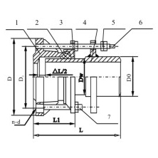 管子外徑DW | 外形尺寸 | 伸縮量δ | 法蘭連接尺寸 | ||||||||